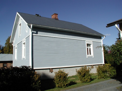 Rakennuksen kuisti on uusittu 1970- tai 1980-luvulla. Ikkunat ovat uusitut T-karmijakoisiksi sekä yksi ikkuna-aukko pantu umpeen länsijulkisivulta. Ne olivat alkujaan jugendtyylisiä yläosaltaan pieniruutuisia ikkunoita. Ulkoasua on ovat palautettu osittain alkuperäiseen muotoon. Välillä pelkistetyssä ulkomuodossa ollutta rakennusta on muutettu alkuperäisen hengen mukaisesti koristeellisemmaksi. Kuistin yläpuolelle oli inventointihetkellä tekeillä sen korotus ja tähän pieni parveke. Tontilla, jossa päärakennus sijaitsee, on myös autosuoja sekä vanha ulkorakennus. Tämä käsittää vanhan saunan, jossa on pieni pukuhuone sekä varastotilan. Rakennus on ollut joskus pidempi, mutta osa, joka oli saunasta etelään, on purettu. Tonttia ollaan puolittamassa, jolloin ulkorakennus todennäköisesti puretaan kokonaan. (2002) |