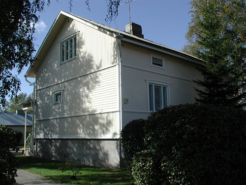 | Rankorakenteinen sekä betoniperustainen asuinrakennus on rakennettu ilmeisesti vuonna 1939. Rakennuksessa on ollut alun perin pihajulkisivulla kummassakin päässä kaksi sisäänkäyntiä.
